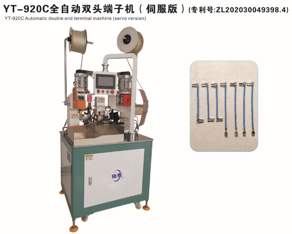 全自動雙頭穿護套端子機、全自動雙頭穿熱縮管端子機、全自動銅帶壓接端子機、全自動雙頭端子機、全自動排線端子機、全自動沾錫打端機、全自動打端插殼機、新能源全自動雙頭穿熱縮管散粒端子機、新能源全自動雙壓單穿激光打號碼管端子機、新能源大平方穿號碼管端子機。